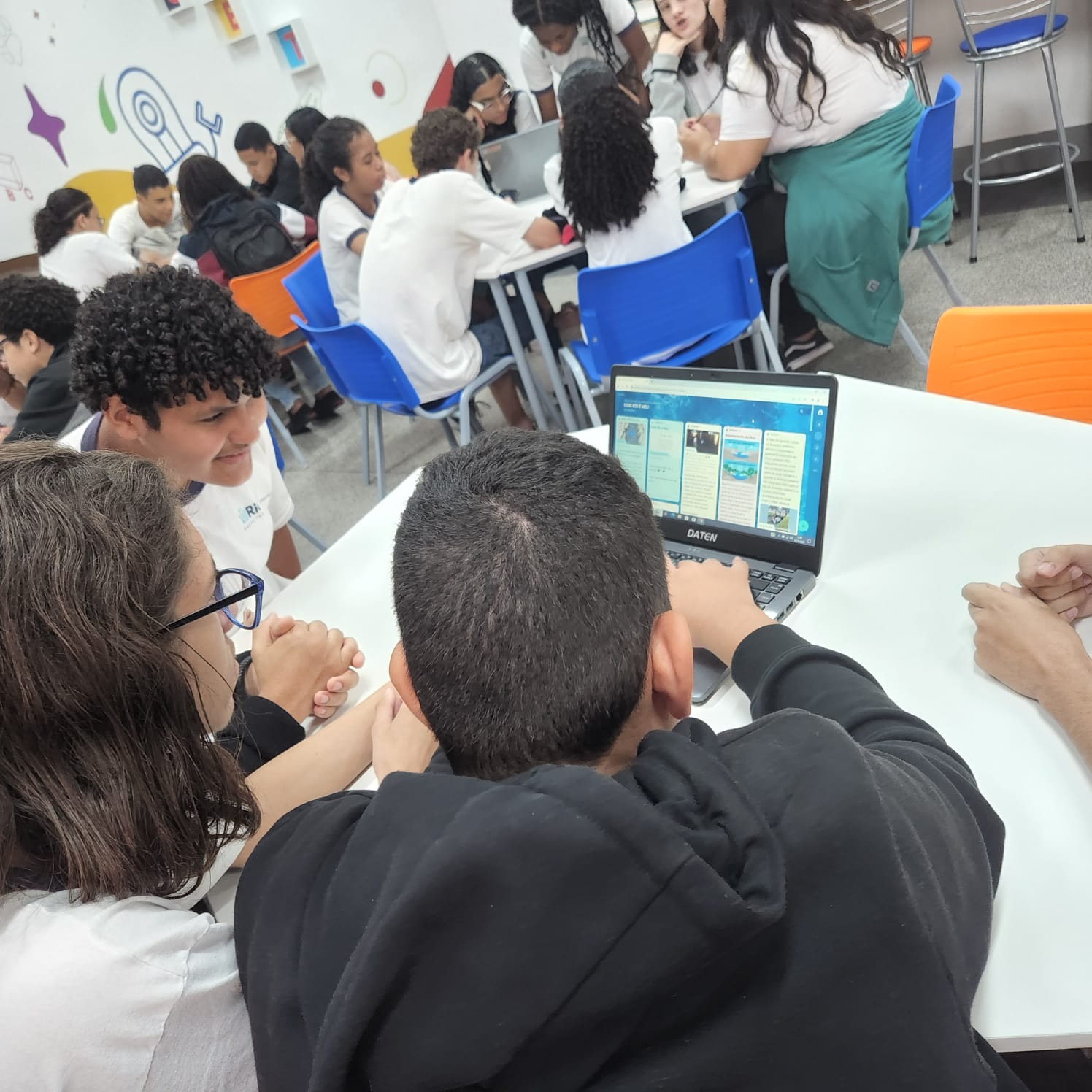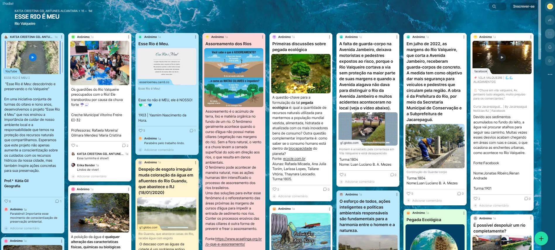 Além do mural informativo exposto no corredor da escola, criamos um PADLET nas aulas de Geografia, ministradas pela Prof.ª Kátia Gil, no colaboratório do GET, que nos permitiu registrar, guardar e partilhar o trabalho que vinha sendo desenvolvido.