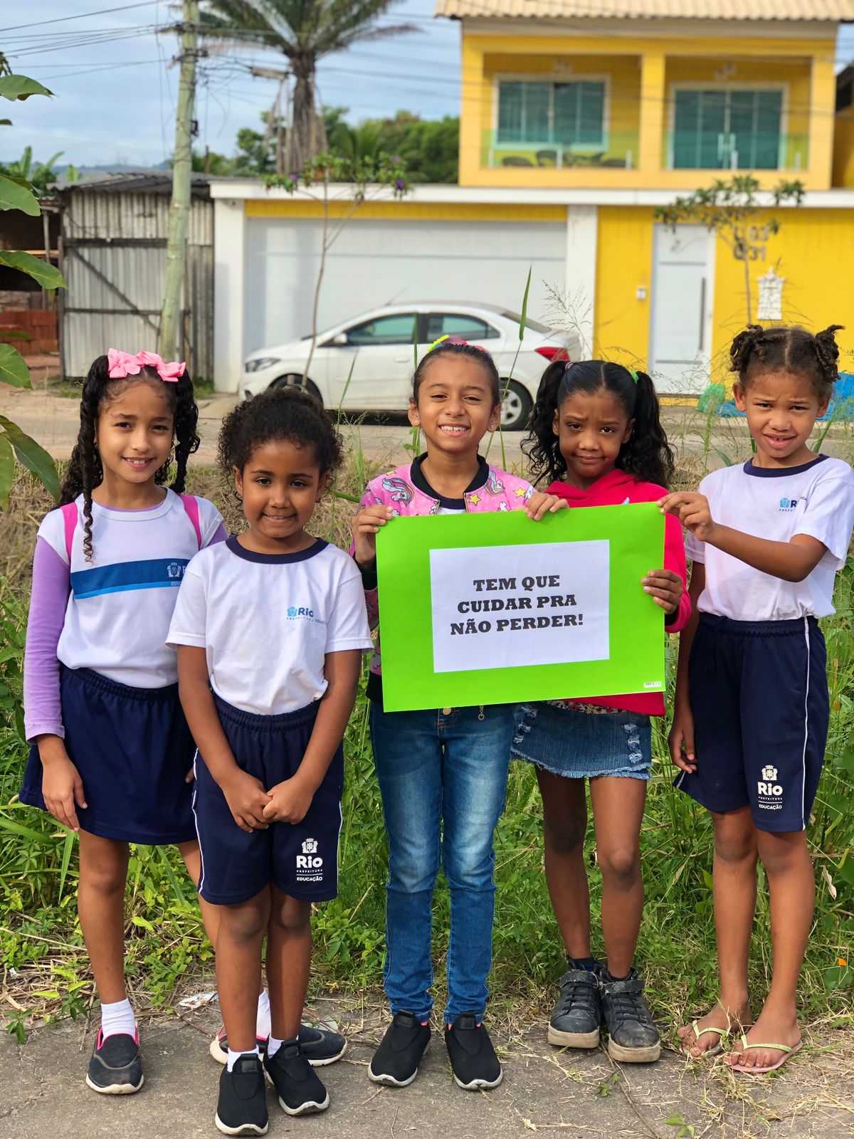 Descrição das atividades / Gratas surpresas: Fizemos uma caminhada para realizar a identificação de aspectos do rio. Convidamos os responsáveis para nos acompanharem, o que foi uma oportunidade de aproximar a escola das famílias. Assim que chegamos, apareceram logo uns 4 miquinhos nas árvores que ficam na margem do rio. Eles amaram!! Foi um encanto!! Durante a caminhada, uma vozinha que nos acompanhava, demonstrou conhecimentos passados sobre o rio. Nesse momento, todos pararam para ouvir o relato dela, o que enriqueceu o conhecimento da história do rio e proporcionou um momento muito significativo além de afetivo. Durante o percurso, os alunos observaram aspectos positivos e negativos. Ao final, chegando na escola, reunimos os alunos para uma despedida da atividade com uma música que fala dos cuidados com o meio ambiente.