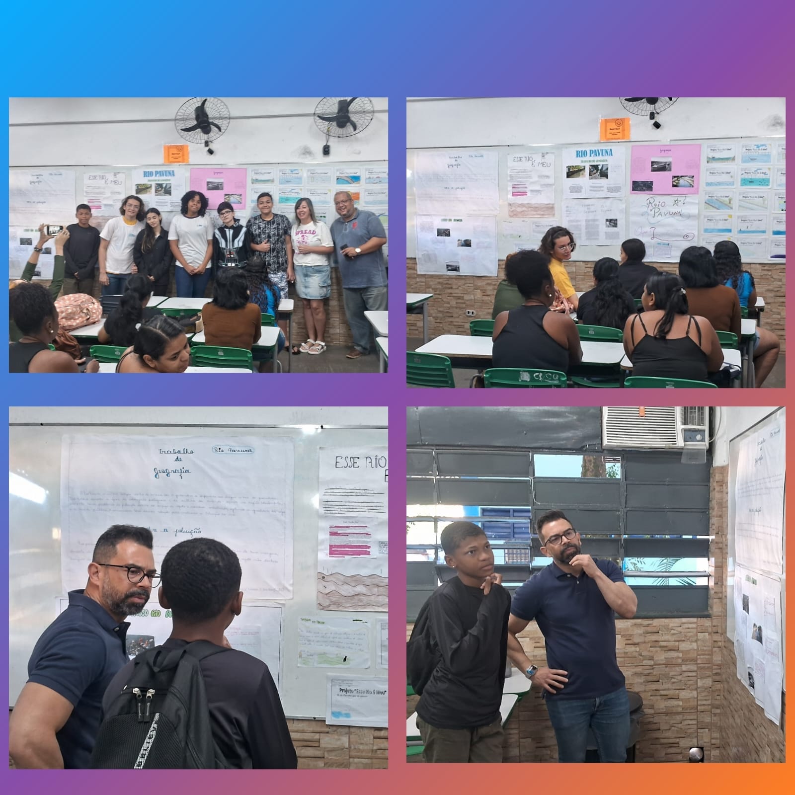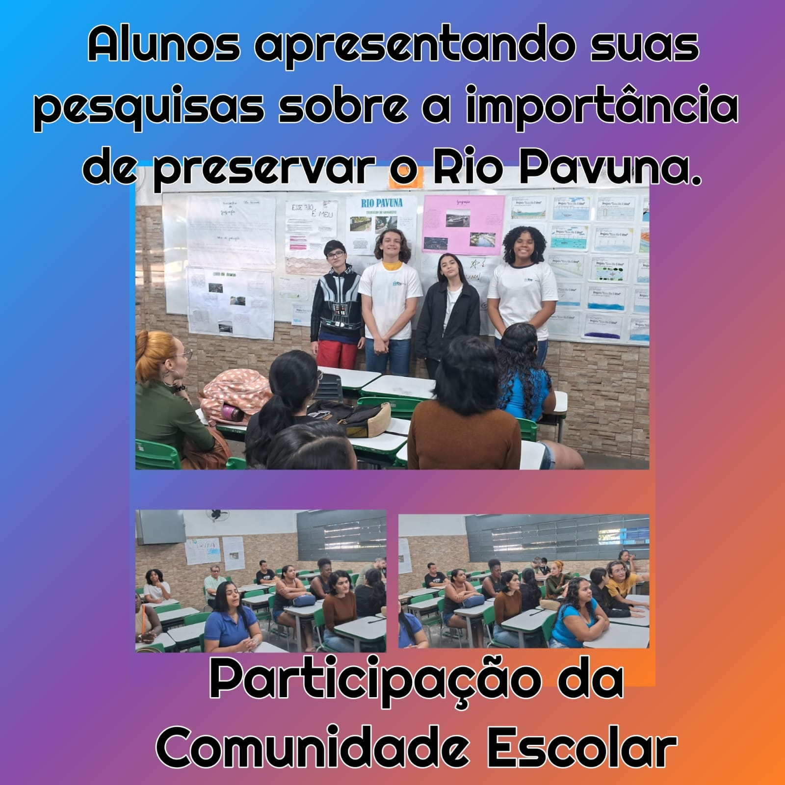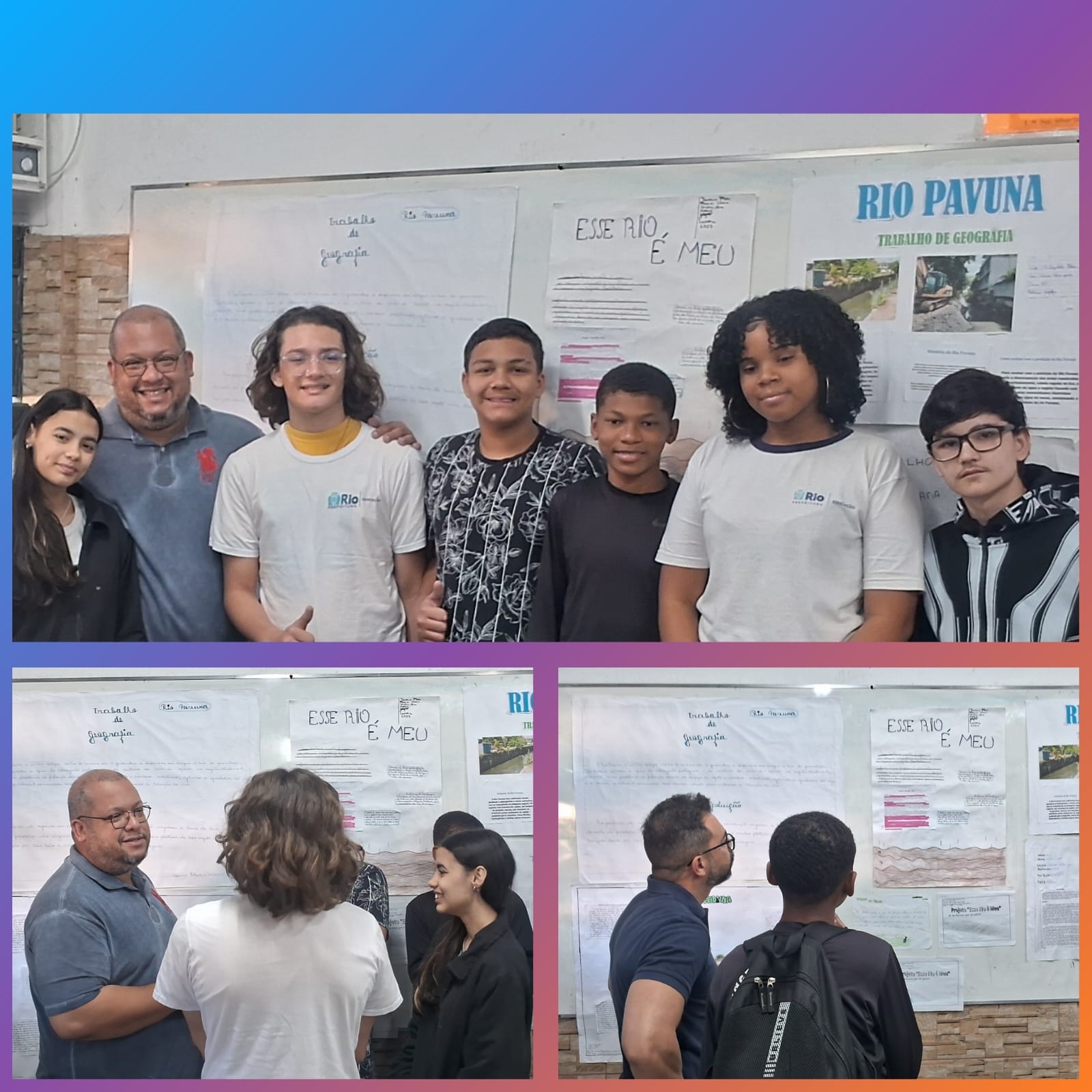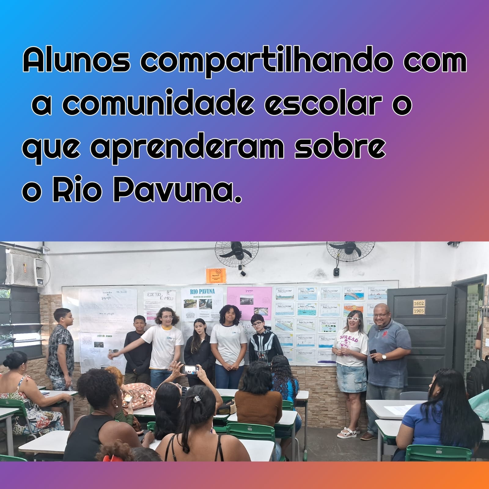 Descrição das atividades / Gratas surpresas: Na quarta e última etapa do Projeto, a professora Gisele Lopes Camara Dutra organizou um evento em que os alunos puderam compartilhar com a comunidade escolar o resultado das atividades que foram realizadas no decorrer do Projeto ESSE RIO É MEU. Nesta quarta etapa, foram distribuídos para os alunos panfletos sobre a atual situação do Rio Pavuna e como podemos intervir nesta realidade. Depois, foi realizada uma reunião com os responsáveis de alunos, de modo que os estudantes tiveram a oportunidade de repassar o que aprenderam, mostrando as pesquisas e desenhos feitos. Mostraram imagens do Rio Pavuna antes e depois da poluição e os cuidados que precisamos ter com o nosso rio. Contamos com a participação do nosso coordenador Charles e de nossos diretores João Paulo e Simone.