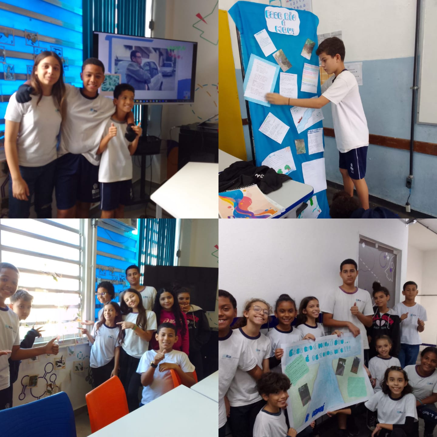 Descrição das atividades / Gratas surpresas: Sondagem diagnóstica sobre a quantidade de alunos que moram próximo, que conhecem ou que já perceberam a presença do rio Caçambé; sensibilização, através de conversa dirigida, sobre a importância dos rios e em especial, do rio a ser trabalhado; realização de visita ao rio e conversas com os moradores locais; levantamento de hipóteses sobre a atual qualidade da água deste rio e sobre as possíveis perdas de funcionalidade (pesca, lazer, hidratação,...), ao longo dos anos; formulação de perguntas para a realização de entrevista com moradores antigos da região; realização das entrevistas, fotos e filmagens no entorno do rio; coleta de material (folhas, flores, gravetos, entre outros) para a produção dos móbiles; concurso de poemas sobre o rio Caçambé; edição dos vídeos com as entrevistas e produção dos cartazes. Durante a realização dessas atividades, foram abordados temas como as modificações na paisagem local (comparação de fotos antigas), os locais de vivência, o sentimento de pertencimento, as partes de um rio, os impactos ambientais antrópicos e os tipos de resíduos mais facilmente observados.