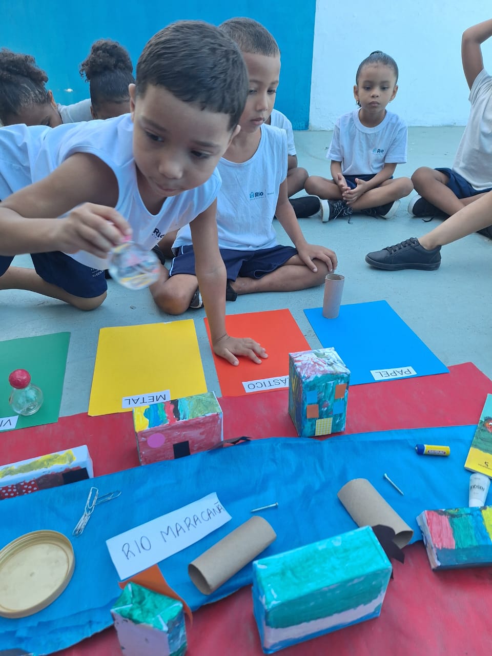 Descrição das atividades / Gratas surpresas: Após conhecermos o impacto do descarte de resíduos, de forma indevida, na conservação do Rio Maracanã, as crianças participaram de uma proposta de conscientização ambiental da importância da coleta seletiva na preservação dos rios.