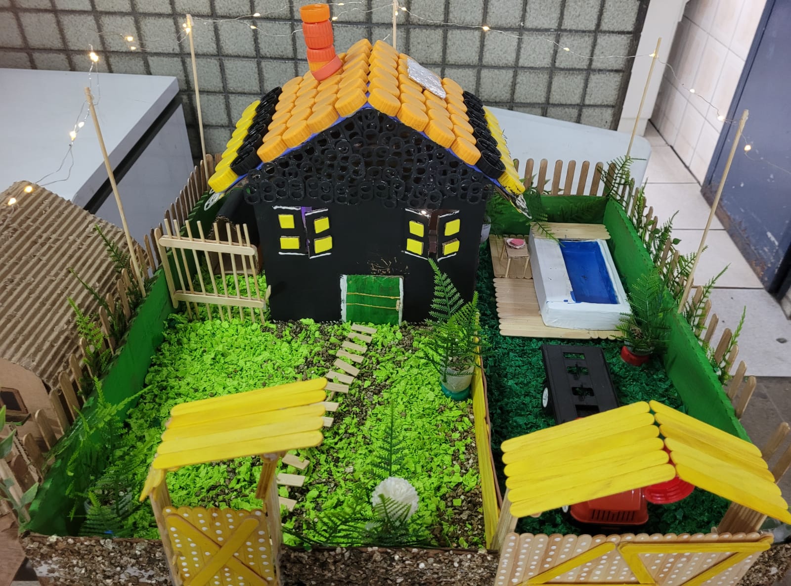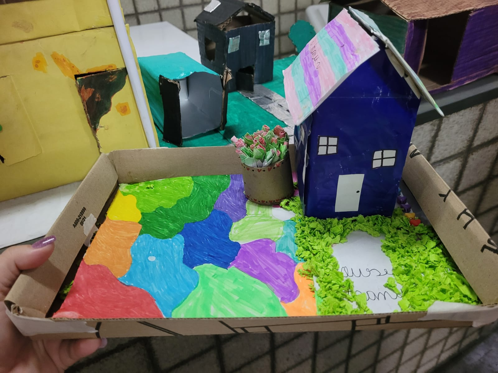 Descrição das atividades / Gratas surpresas: A professora Beatriz realizou a atividade junto aos alunos onde, utilizando materiais recicláveis/reutilizáveis e muita criatividade, a turma 1601 confeccionou diferentes moradias, compararam e descreveram os diferentes tipos de habitações. Tudo isso alinhando as aulas de inglês com o nosso PPA e o projeto "Esse rio é meu".