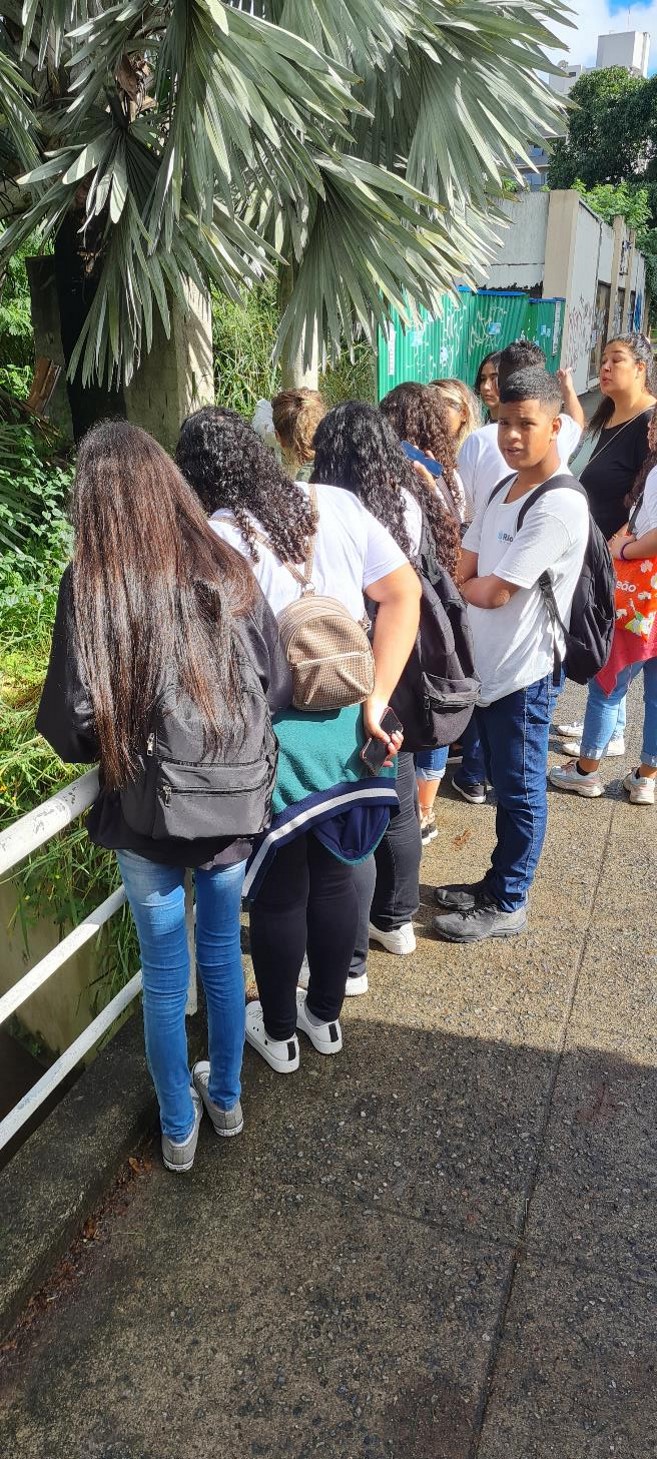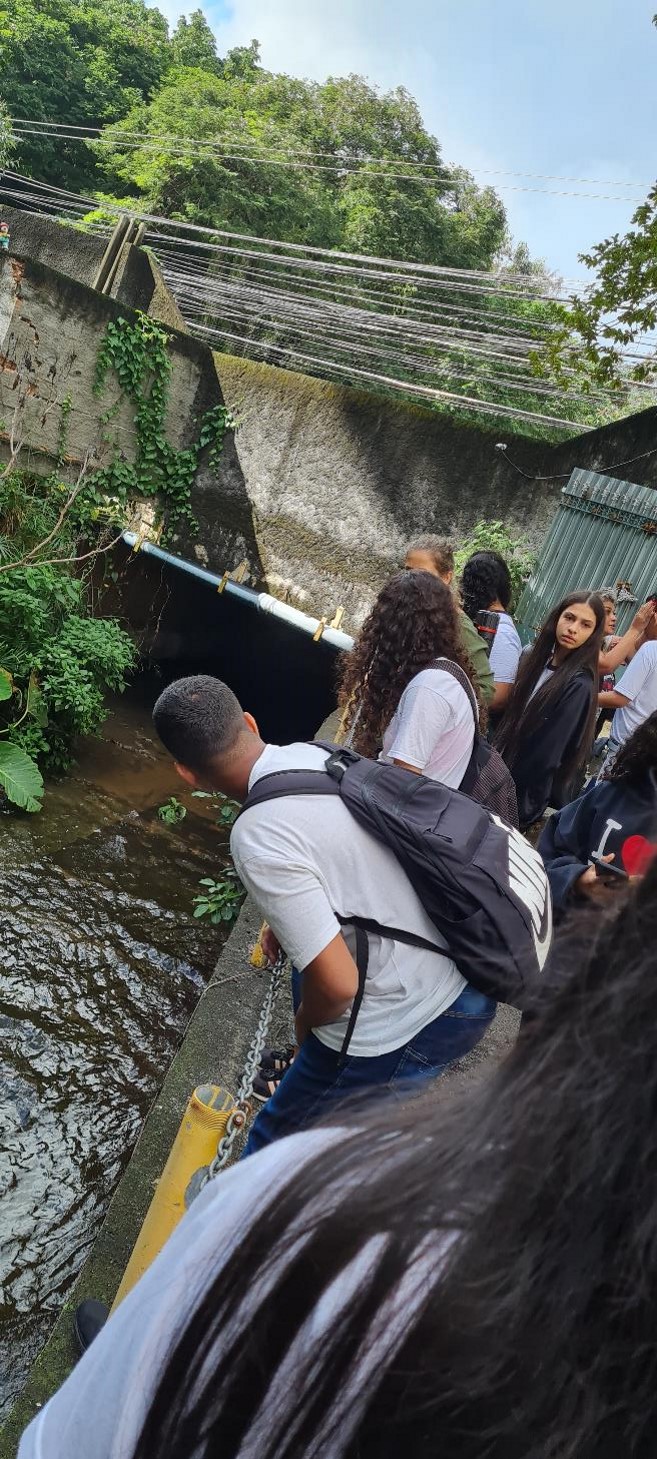 Descrição das atividades / Gratas surpresas: A atividade teve como objetivo realizar uma aula de campo com alunos do 8º e 9º anos, no ponto mais próximo, em termos de acessibilidade, à nascente do Rio Sangrador. De acordo com a pesquisadora Verônica, o rio Córrego Panela foi canalizado e submerso, não sendo possível ser visto a olho nu. Dessa forma, optamos por fazer visita ao Rio Sangrador, pois o rio Córrego Panela desemboca nele. É importante pontuar que essa atividade foi uma ação de inclusão, pois levamos nossos 2 alunos surdos à aula, com intérprete Rafaela (do Instituo Helena Antipof). Feita essas explicações aos alunos, caminhamos até esse ponto e pudemos observar que os vestígios de poluição, nesse ponto do rio, são mínimos, dando vontade de "dar um mergulho nele" ou "beber essa água" (palavras dos alunos). Após esse primeiro ponto, (subida da serra Grajaú-Jacarepaguá), fomos fazendo o percurso do rio, até os pontos mais próximos da escola. Os alunos observaram que, à medida que urbanização avançava, os pontos de poluição também cresciam, desde esgoto a vidros, papel, plástico e, somado a isso, o mau cheiro também imperava, "perdendo a vontade de entrar no rio" (segundo os alunos). Nesse percurso, as gratas surpresas foram os questionamentos sobre o tipo de vegetação, leis que regulam a habitação e as falhas no cumprimento das leis.