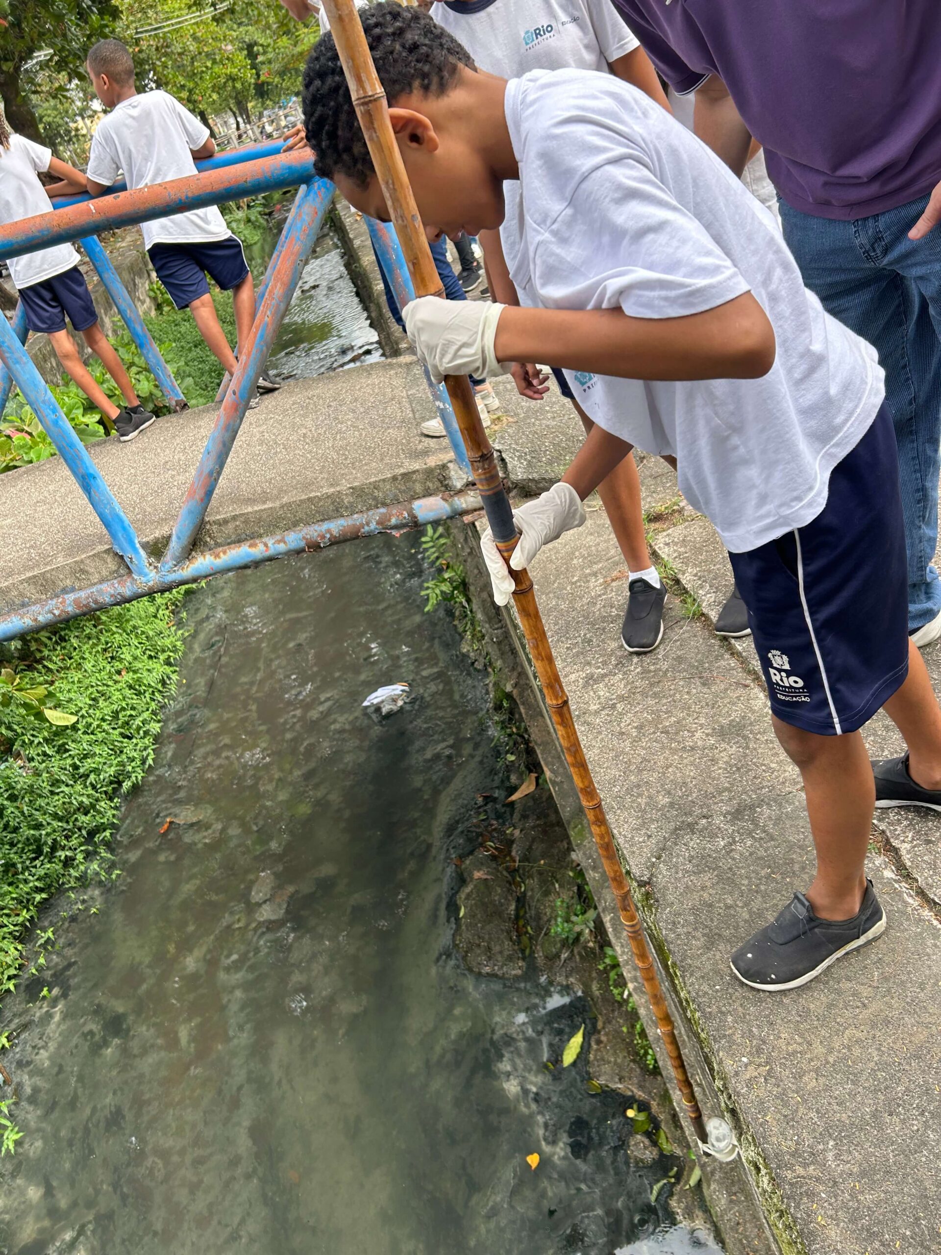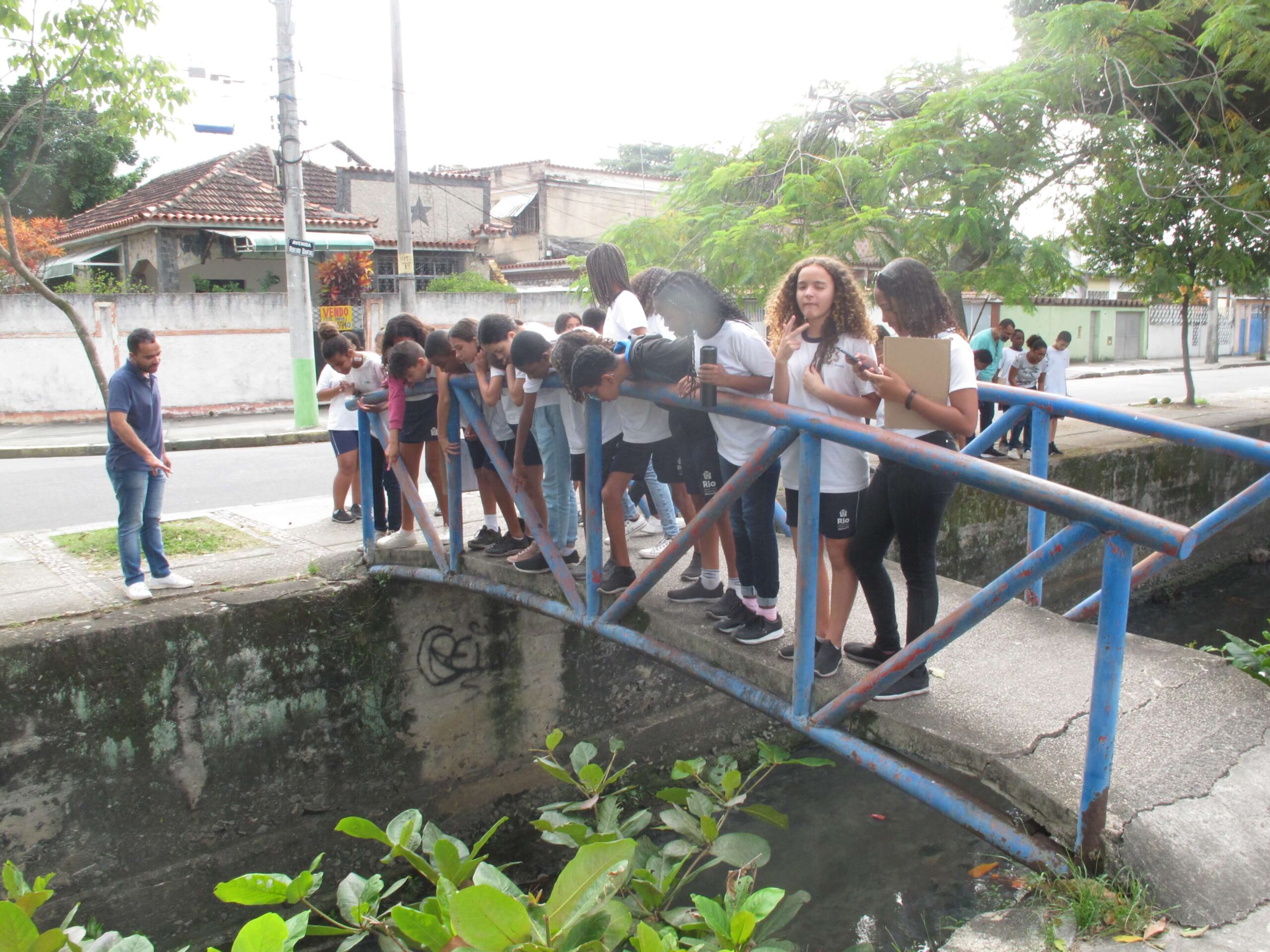 Descrição das atividades / Gratas surpresas: Os alunos do 6º ano foram apresentados ao projeto “Esse Rio é Meu” e posteriormente foram levados para conhecer o canal próximo à escola. Durante o trajeto, os alunos coletaram 3 amostras de água em diferentes pontos do canal, para análise e comparação, além de tirarem fotos e fazerem anotações do que foi observado no canal e no seu entorno. Essas informações servirão de subsídios para as próximas etapas do projeto. Foi uma grata surpresa ver o interesse e engajamento dos alunos nas tarefas realizadas durante a visita.