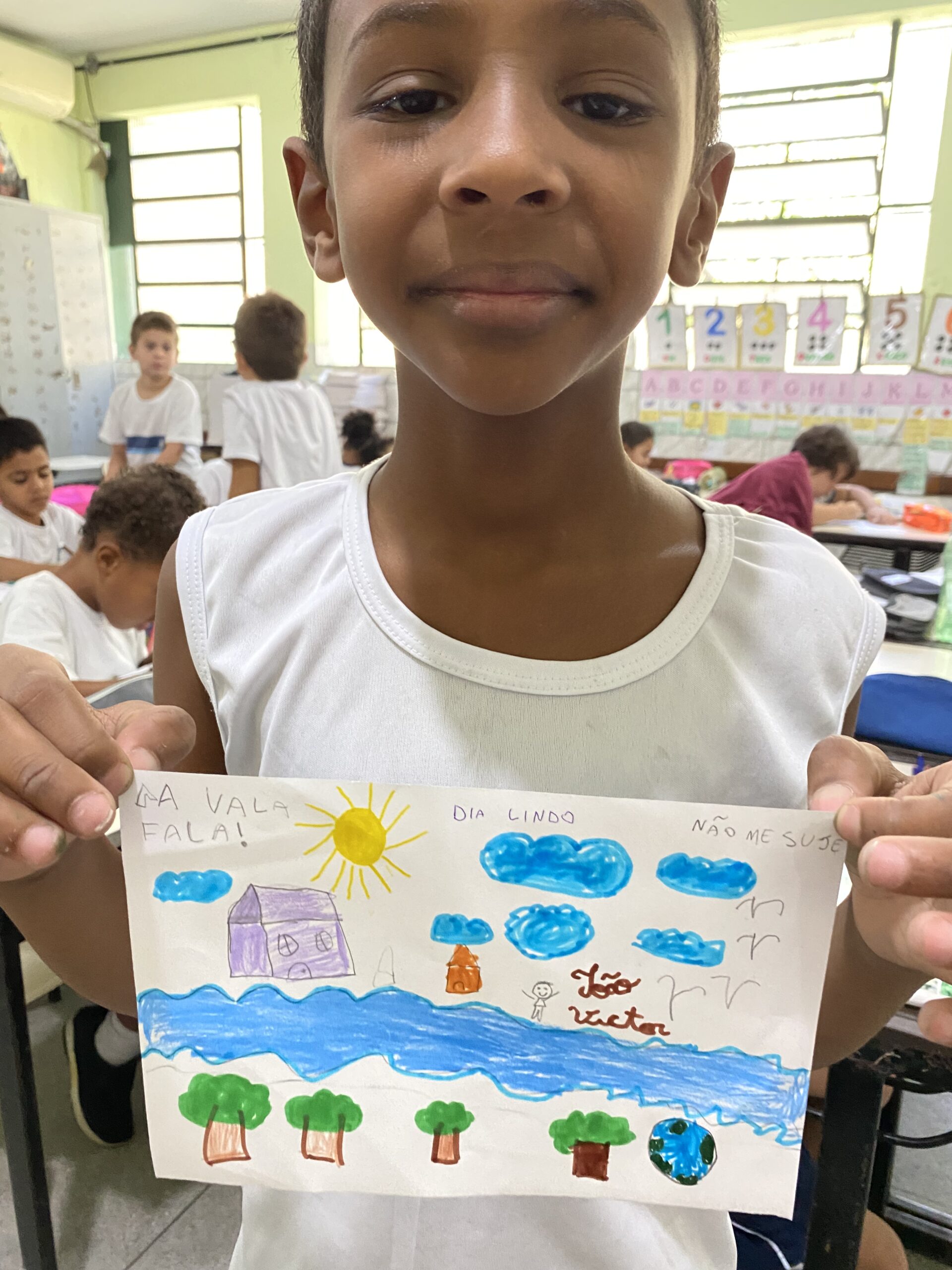 Descrição das atividades / Gratas surpresas: Apresentação do vídeo e das fotos da vala próxima à comunidade escolar; conversa sobre a função da vala no ambiente. Identificação de alguns problemas existentes na vala (muito lixo e muita falta de cuidado). Criação do trabalho: “A VALA FALA”; os alunos desenharam como eles gostariam que fosse a vala.