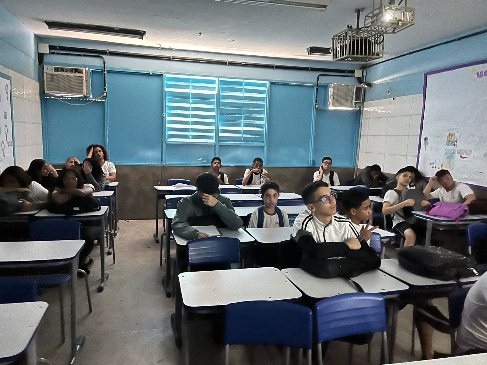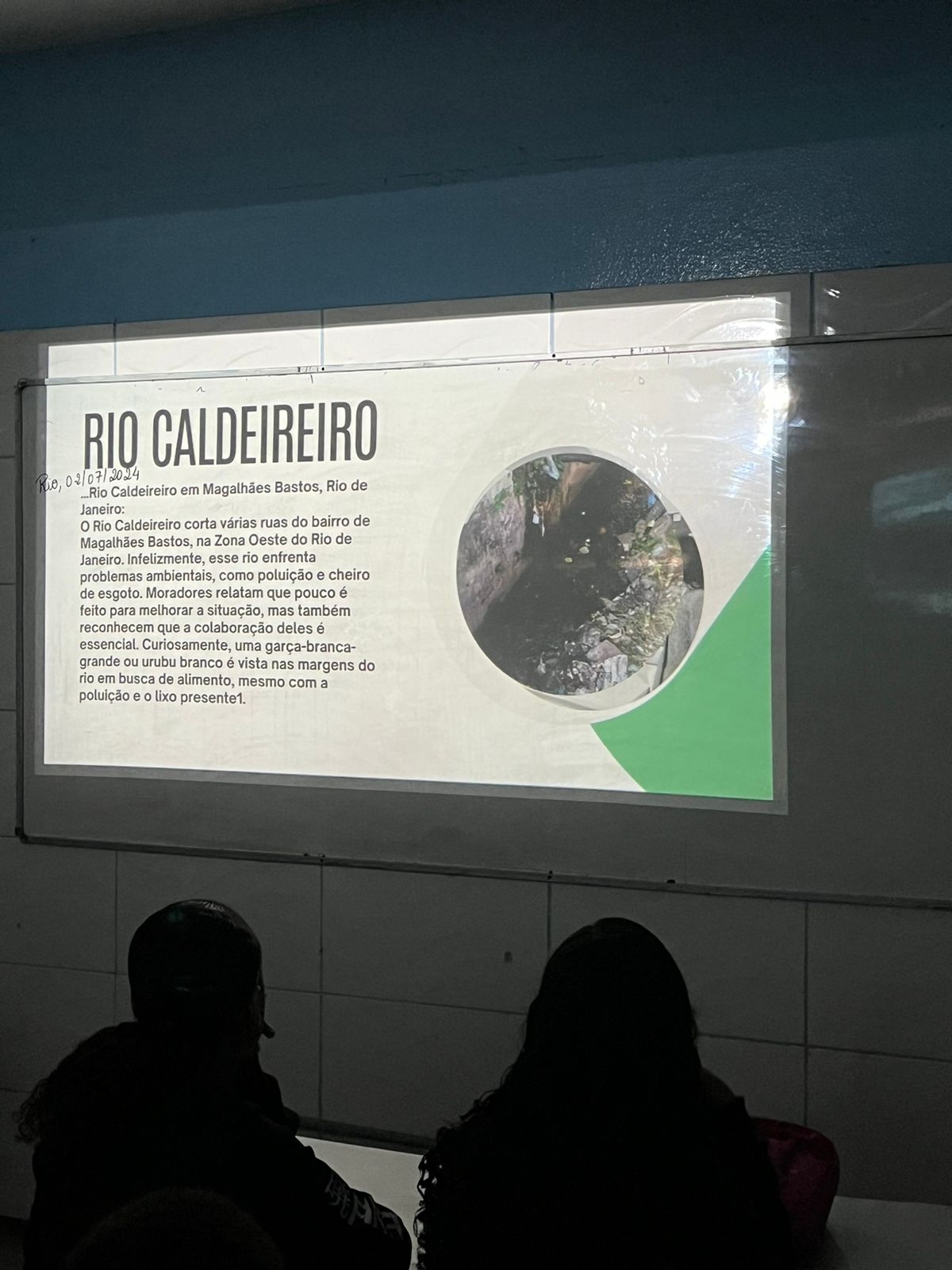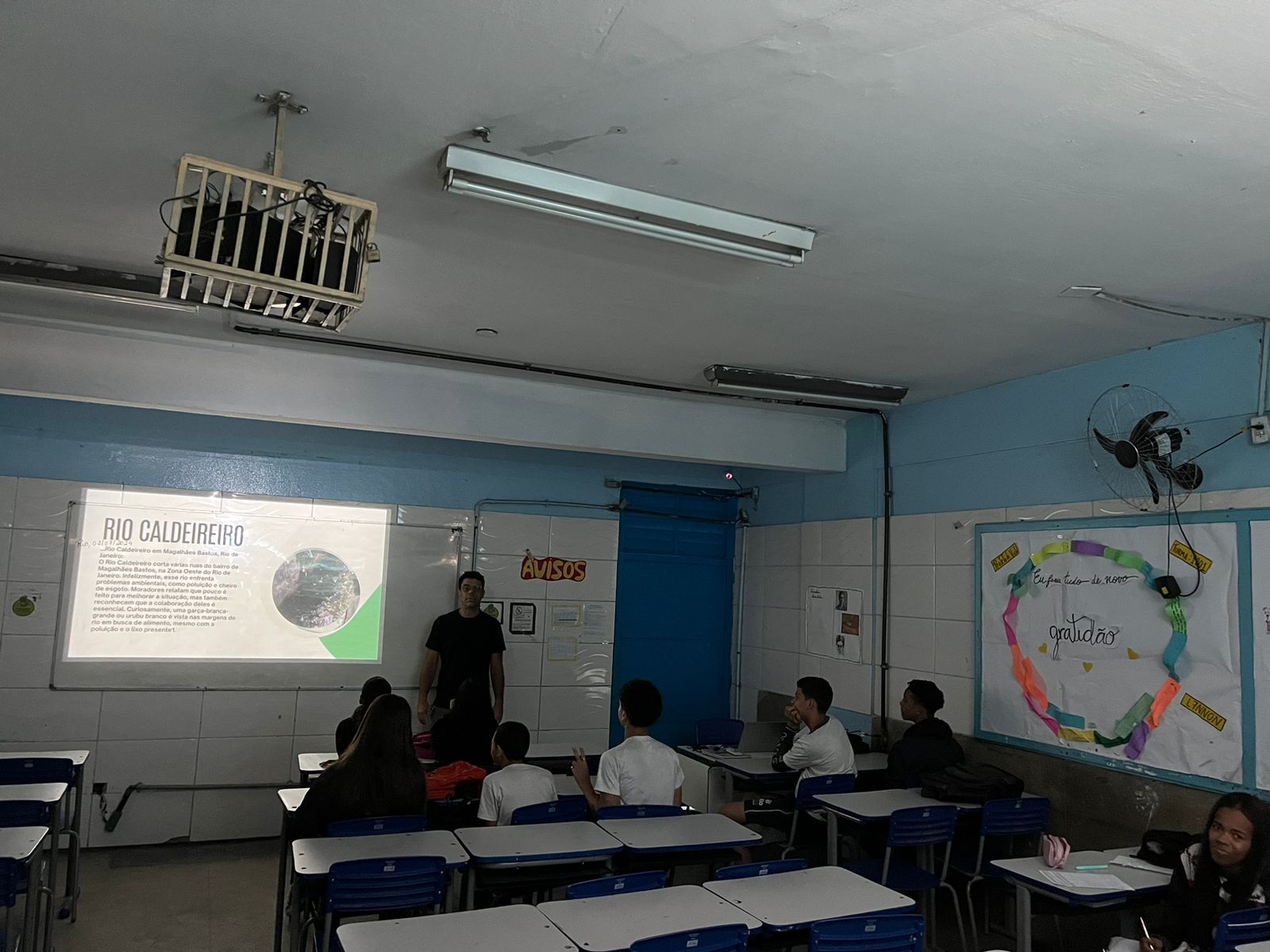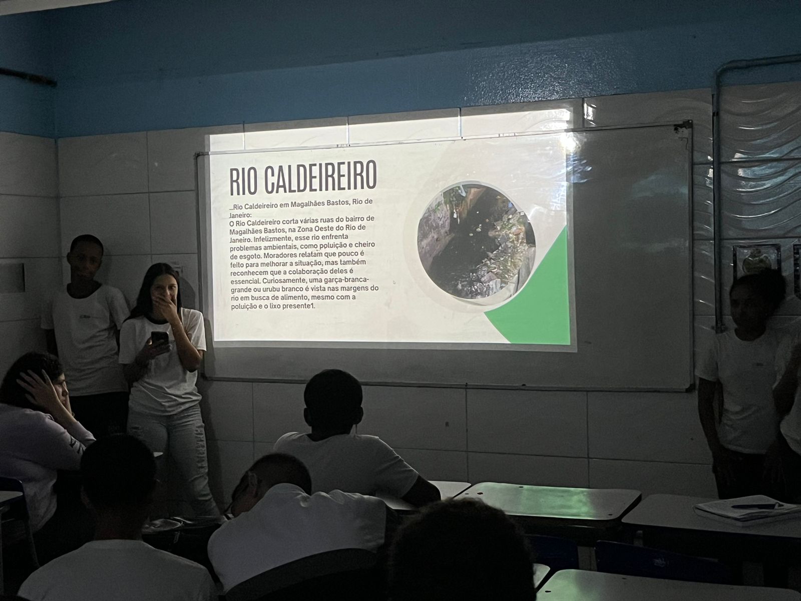 Descrição das atividades / Gratas surpresas: Na primeira etapa do projeto "Esse Rio é Meu", os alunos das turmas 1903 e 1904 do GET Presidente Humberto de Alencar Castelo Branco realizaram o reconhecimento do Rio Caldeireiro, que passa próximo à escola. Eles identificaram o ponto de origem e o local de deságue do rio, além de observarem, já nesse primeiro momento, alguns problemas ambientais relacionados. Posteriormente, alguns alunos do 9º ano foram selecionados para apresentar o conteúdo aprendido aos alunos do 8º ano.